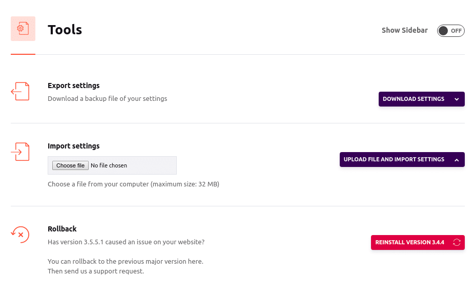 Different setting options on WP Rocket: