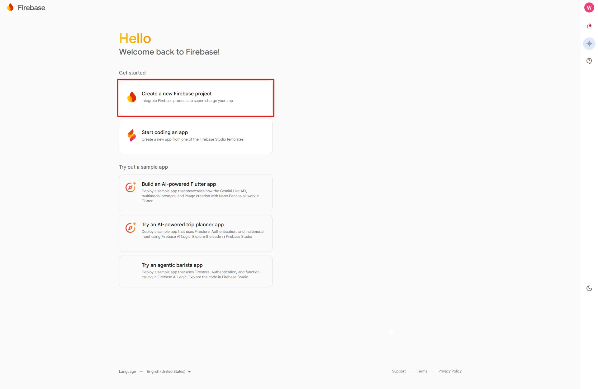 Login to your gmail account and go to https://console.firebase.google.com/. Then, click on Create a new Firebase project.