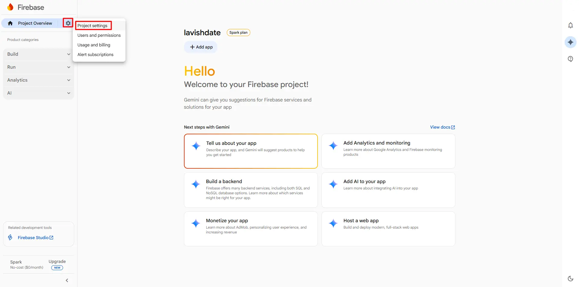 Now, refresh the page and go to Project Overview and click on Project Settings.