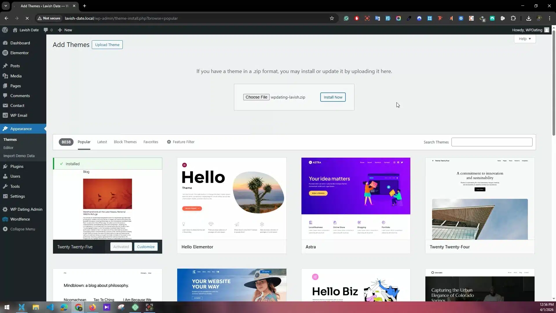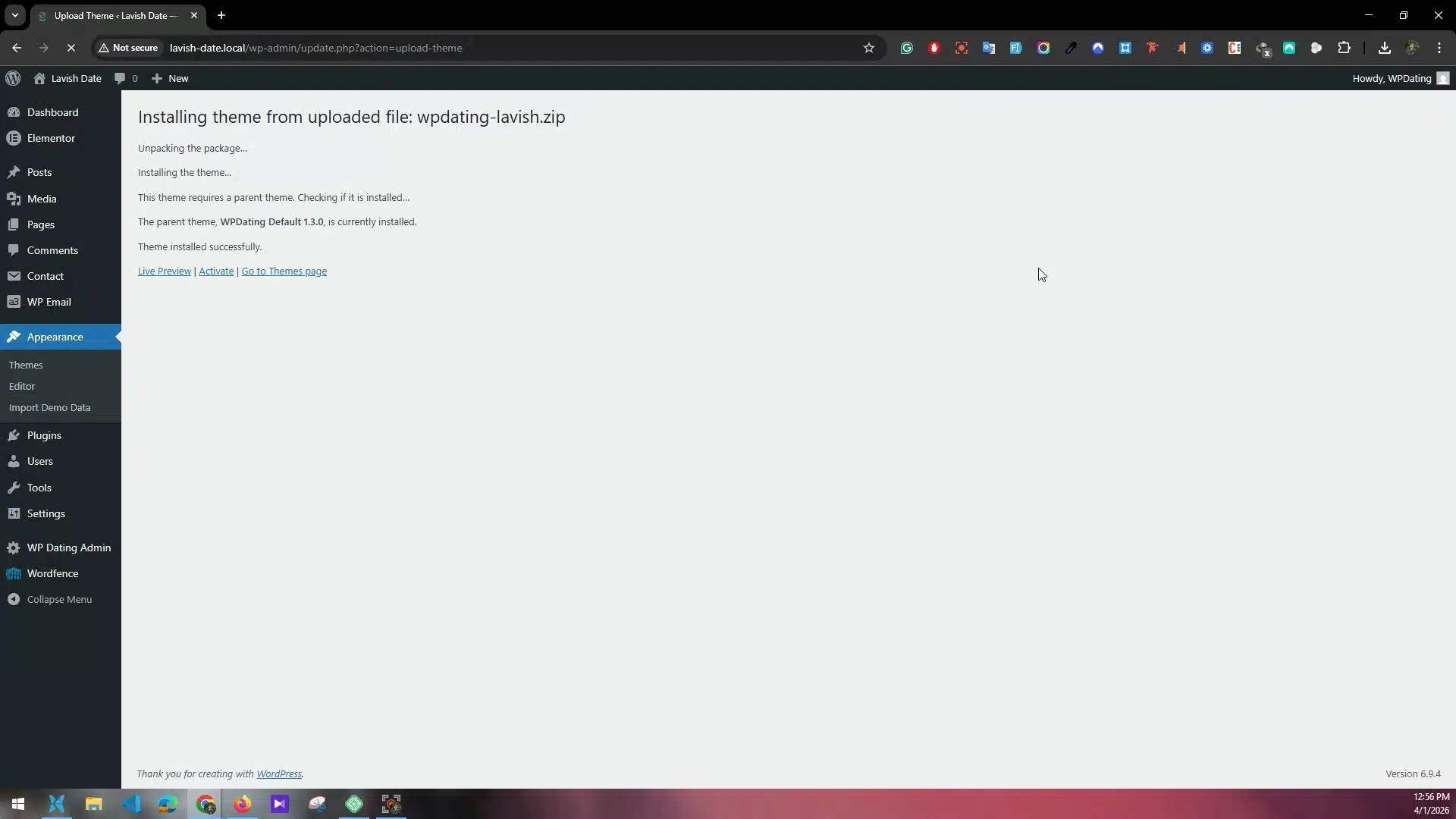 Installing our WP Dating Default ThemeandLavish Date Theme.