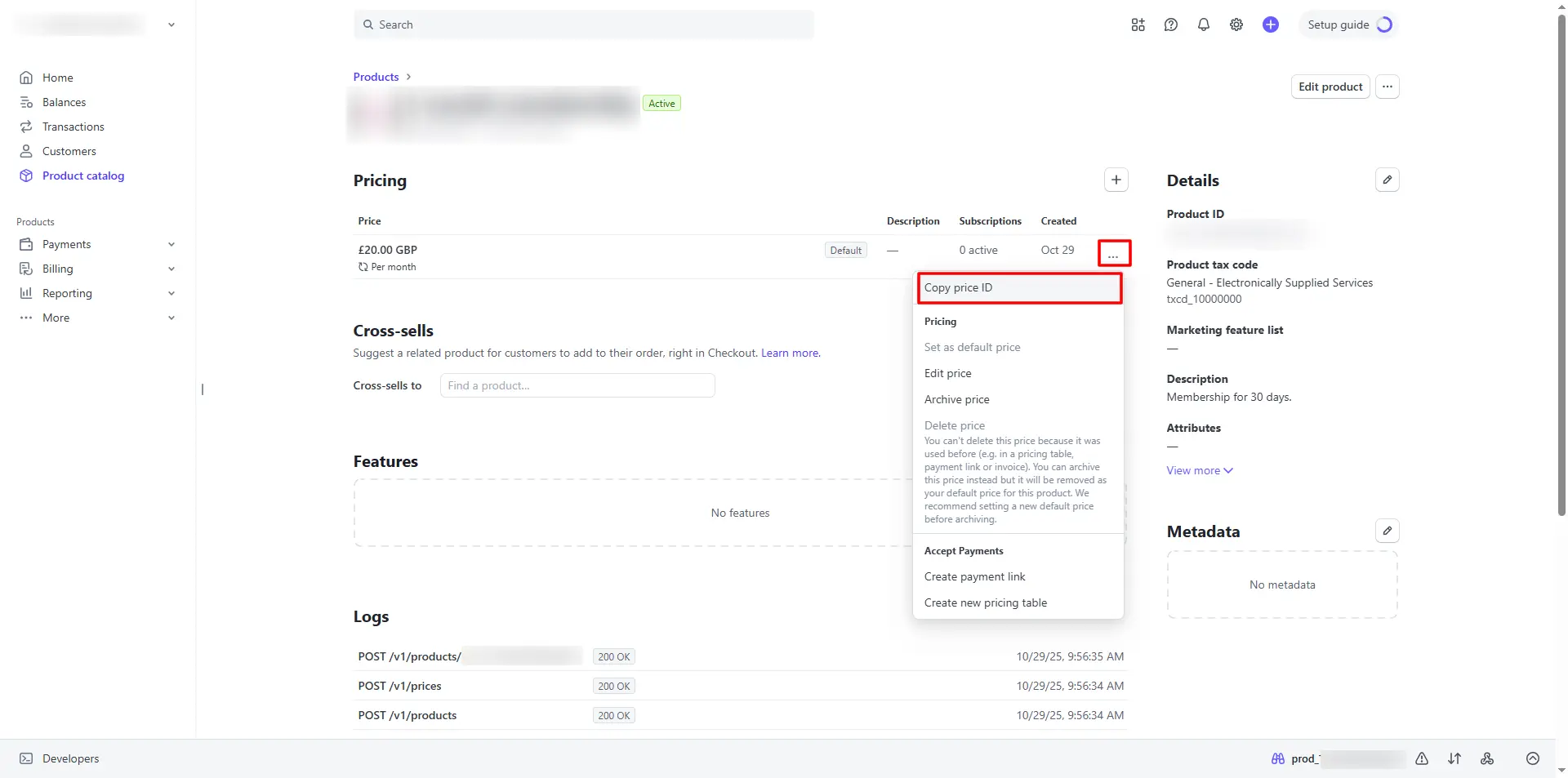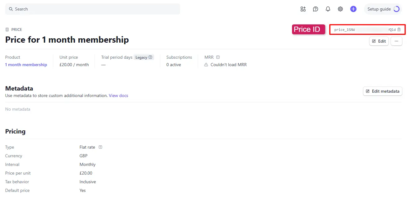 Copy the Price API ID of the product to be used for the membership plan.